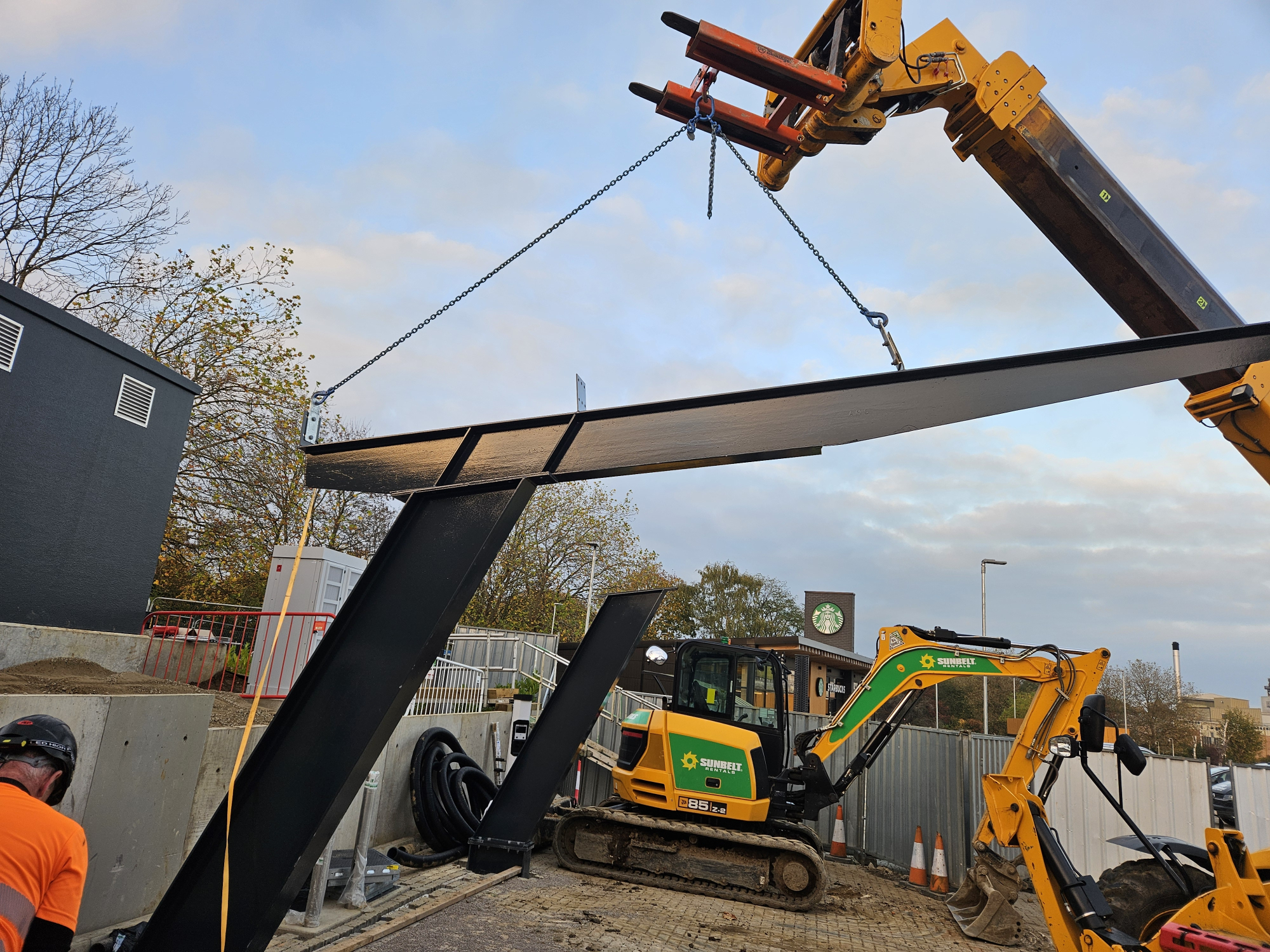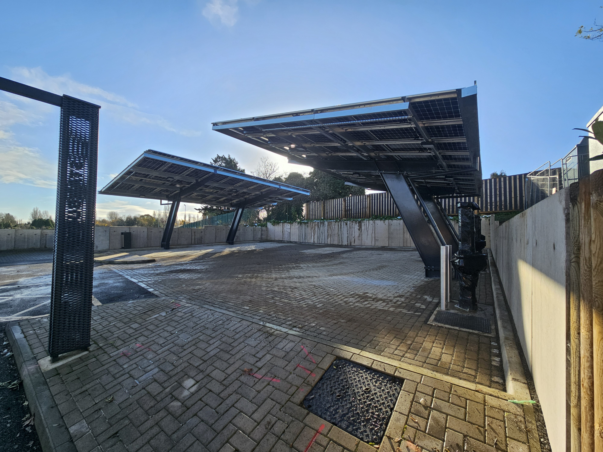 We also managed the installation of service ducting to link all system components and allow for future expansion. The project required precise lifting operations to position equipment and canopy elements safely within the live site environment.