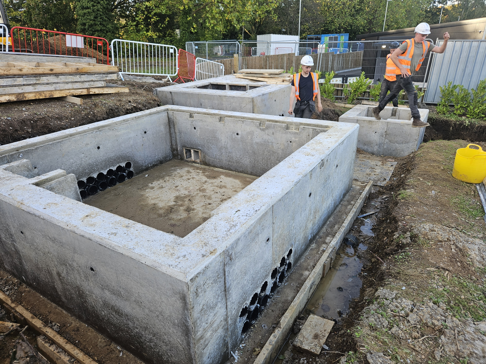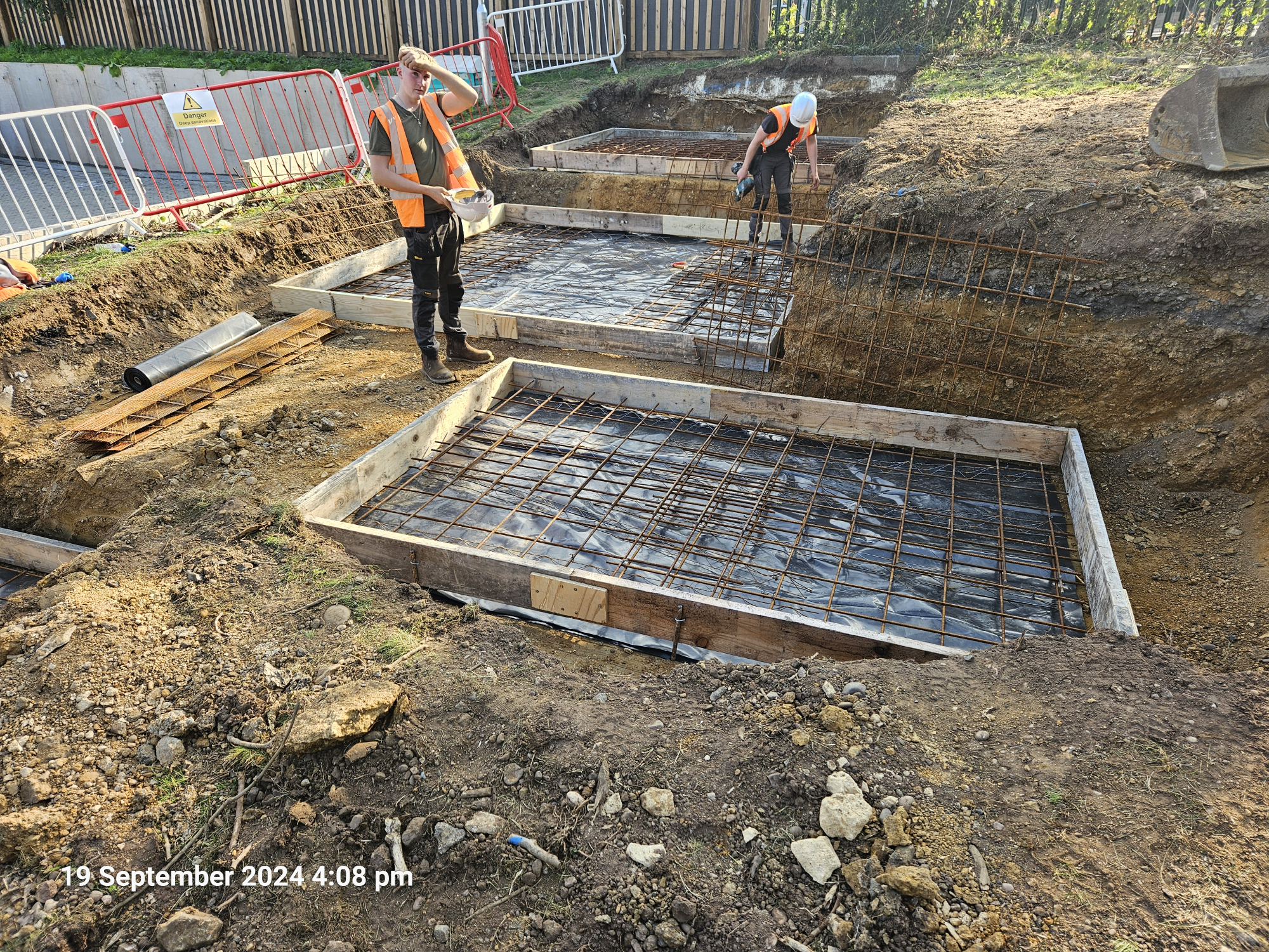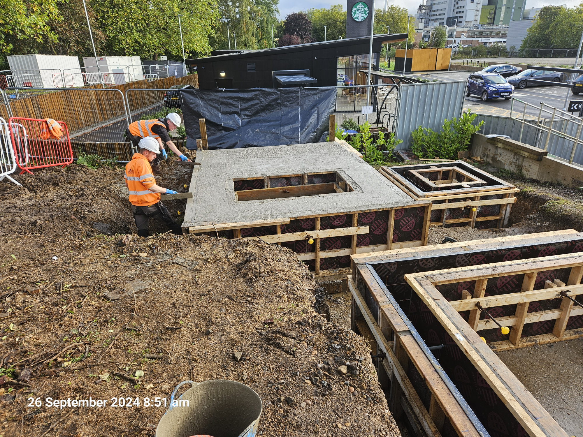 TJ Atkin Ltd were responsible for the construction of four in-situ reinforced concrete foundation bases, built to third-party design and quality specifications. These formed the structural foundations for both the charging units and the solar canopy.