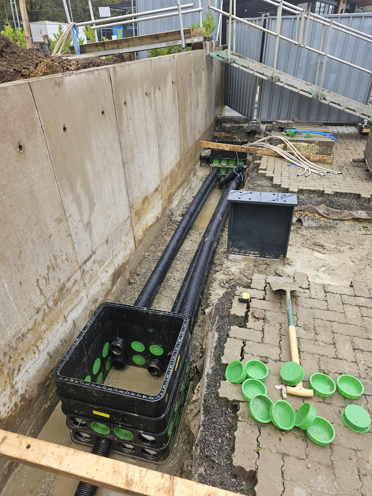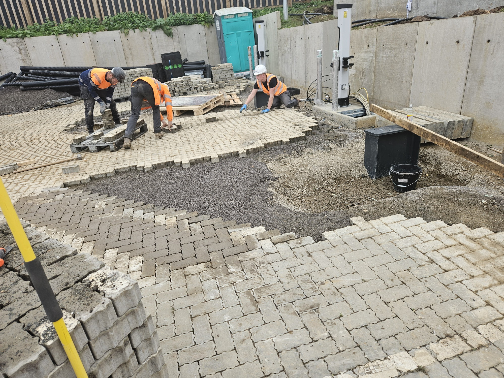 All works were carried out within the existing block paved SuDS-compliant car park, requiring careful coordination and reinstatement to maintain drainage performance and aesthetics.