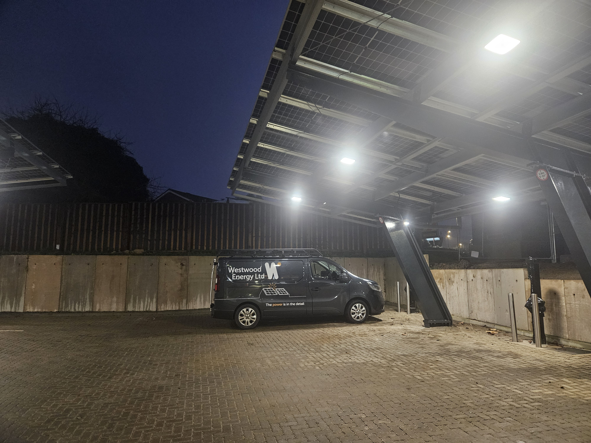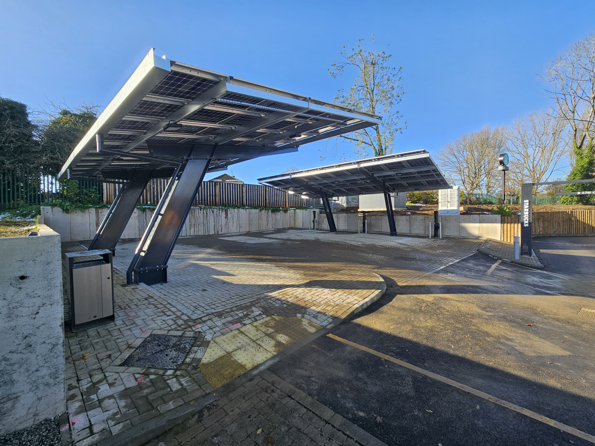 The project involved installing the new EV charging infrastructure within the existing car park, beneath a cantilevered solar canopy, while ensuring that works were completed without disruption to the tenant’s ongoing business operations.